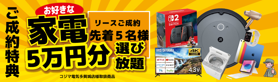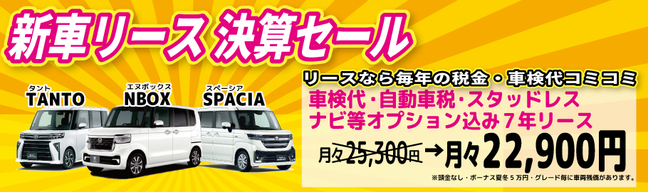 3月31日まで新車リースを決算セール価格で大放出します!先着5名様まで家電選び放題も!!詳しくはタップ!