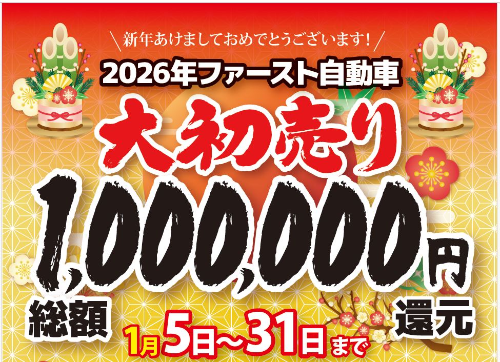 初売り総額100万円還元の5つの目玉!大盤振る舞いです!